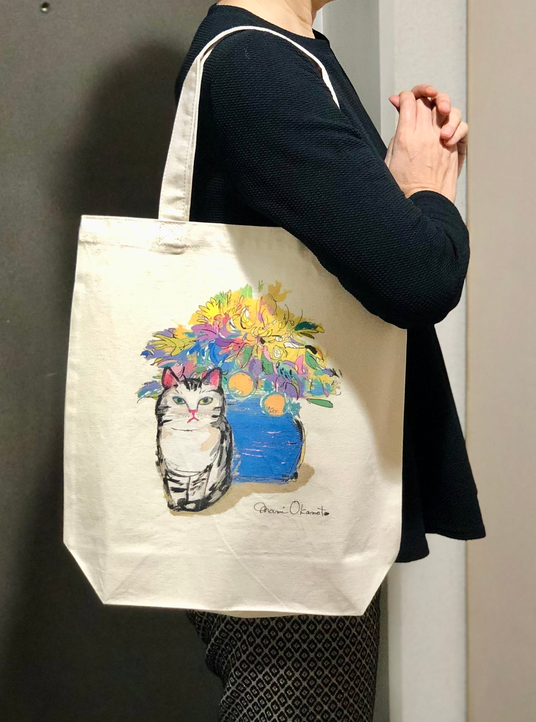 キャンバスバッグ「花と猫」